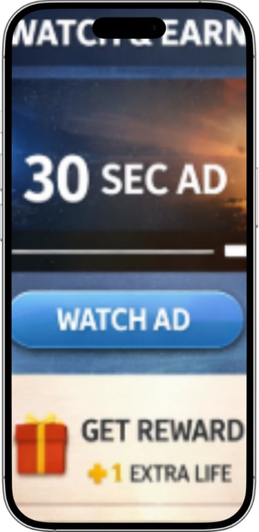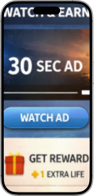 Rewarded ads are opt-in video ads that users choose to watch in exchange for a reward, like extra lives in games, content access, or in-app credits.